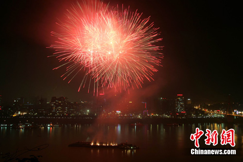 30日晚8時(shí)30分,隨著第一波“錦笛銀龍”呼嘯而起,接著“迎賓禮炮”震撼云霄,引來觀眾齊聲歡呼。仰望星空,煙花時(shí)而如金龍戲水,時(shí)而如白練橫江,時(shí)而如彩鳳弄云,時(shí)而如嫦娥奔月,一發(fā)發(fā)禮花彈奏響云端,讓人賞心悅目。據(jù)焰火晚會總導(dǎo)演何鴻森介紹,本次焰火晚會為時(shí)39分鐘,共計(jì)燃放了30000發(fā)禮花,首次引進(jìn)國外工藝的煙花和先進(jìn)的燃放經(jīng)驗(yàn)。