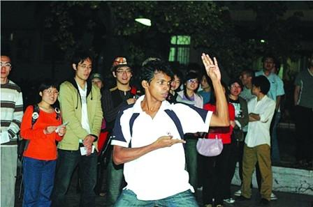 瑞士留學生“飄零”的一套“詠春拳”博得滿場喝彩,他用不太流利的漢語自我介紹:“我來中國已經(jīng)八個月,我從小就很喜歡中國武術,這套詠春拳是我到廣東佛山時向當?shù)厝藢W習的”;來自斯里蘭卡的米奇也不甘示弱,拿著中國的雙節(jié)棍“哼哼哈哈”的舞了起來。十余名留學生還跟著幾名中國學生練起了太極拳,一邊練拳一邊學說漢語……“漢語角”負責人白彥介紹:“許多外國朋友雖然學了中文,但在生活中依然存在著許多不便,在外面就餐、游玩時經(jīng)常會遇到語言障礙。于是我們便仿照‘英語角’的形式舉辦‘漢語角’,既讓外國人練口語,也能讓他們了解中國傳統(tǒng)文化!(記者談海亮 通訊員張聞 林賢宰)