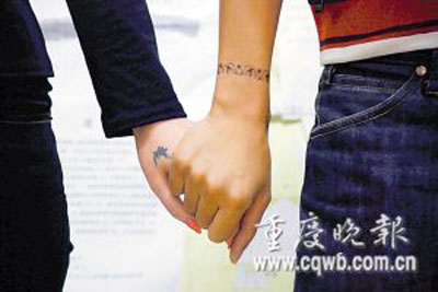 25歲的小海是墊江縣人,就讀于重慶大學B區(qū)土木工程學院。大四時,小海和同系女孩小麗相戀。一次,小海從網上了解到,國外不少戀人喜歡在各自的身體上文上相同圖案,以此表達愛意,他便和小麗同在左臂上文上了一個“龍”字。“我們名字里都有這個字,文上它,誰都知道我們是一對!