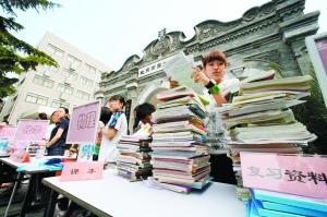 “眼看就要高考了,聽說他們連課本都沒有。”“我的高考結(jié)束了,我想我的資料能對他們在高考中考出好成績提供幫助!弊蛉丈衔9時,剛剛結(jié)束高考的北京高三學生們在二中校門外將自己的復習資料捐贈給災區(qū),他們還將自己的祝福寫在復習資料的扉頁上,向經(jīng)受地震災害的同齡人送去鼓勵。