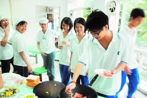 今年,靈巧家政社還被評(píng)為“十優(yōu)”社團(tuán)之一!皩(dǎo)師”之一、學(xué)校飯?zhí)门ぶx阿姨告訴記者,她為不耽誤孩子學(xué)習(xí),從不讓孩子碰家務(wù)活。留學(xué)澳洲的頭一年,20多歲的兒子常打電話(huà)來(lái)哭訴不會(huì)買(mǎi)菜、做飯和洗衣服!斑@一代孩子真不像我兒子那一代啊,他們更有自己的一套,早早就懂得去學(xué)習(xí)如何安排自己的生活了。”
