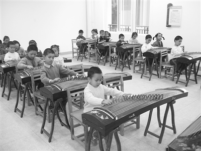 11 月13日,記者在漢陽玫瑰園小學(xué)南國明珠校區(qū)古箏室看到:一年級一班31個孩子(包括17名男生),在專聘老師的指導(dǎo)下,有模有樣彈著古箏。音樂老師指著坐窗口的一個小男生介紹說:“他叫小杰,可以說是最調(diào)皮的孩子了,但只要一上古箏課他就特別安靜而且好學(xué),他都能完整彈好幾首曲子了呢!”
