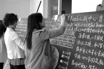 晚報訊 為提高教師教學(xué)基本功,上海第二工業(yè)大學(xué)日前舉行以“迎世博爭做主人、抓中心育人為本”為主題的教職工板書競賽,首次邀請學(xué)生做評委給老師打分。由各學(xué)院選拔出的35名教師分老、中、青三個年齡組進(jìn)行比賽,評分標(biāo)準(zhǔn)由版面構(gòu)思合理、用規(guī)范字、筆畫清楚有力等方面組成。比賽裁判組邀請了各學(xué)院教學(xué)院長等18 人進(jìn)行現(xiàn)場評分,同時首次邀請30位學(xué)生學(xué)習(xí)委員代表一起參與評分。比賽現(xiàn)場吸引了數(shù)百名教職工前來觀摩、取長補短! 跤浾 肖波 攝影 蔣世偉