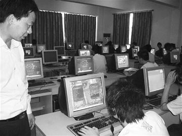 記者隨后來(lái)到某高級(jí)技工學(xué)!拔C(jī)室”,也看到了類似的情況。據(jù)學(xué)生們講,他們只須花10元錢買一張上網(wǎng)卡,就可以任意上網(wǎng)(每小時(shí)收費(fèi)1元)。