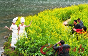 本報(bào)訊(記者海國攝影報(bào)道)昨日,從化石門公園金海節(jié)開幕前,來自西安交大的兩名女大學(xué)生,分別身穿一件全部由白紙制的成環(huán)保衣服,穿梭在花中向游人宣傳環(huán)保觀念。據(jù)該服裝設(shè)計(jì)的作者、環(huán)保主義者朱女士說:創(chuàng)作靈感來自哥本哈根會(huì)議。兩件服裝分別花費(fèi)一個(gè)星期,用了90多筒卷紙折疊而成,希望人類保護(hù)自然,愛護(hù)環(huán)境,不然五光十色的地球?qū)⑼噬兂蓡我坏陌咨?table border=0 cellspacing=0 cellpadding=0 align=left>