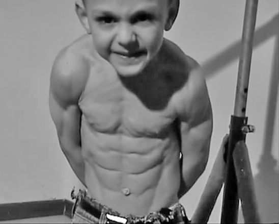 在娛樂(lè)節(jié)目現(xiàn)場(chǎng),斯特勒用幼小的雙手支撐起整個(gè)身體,樹(shù)立在空中的雙腿間夾著一個(gè)健身專(zhuān)用重球。在一片驚呼聲中,他用雙手輕松“走”完10米全程,成為完成這一任務(wù)用時(shí)最短的人,摘得“世界最強(qiáng)壯男孩”桂冠。