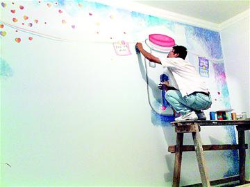 “傳統(tǒng)裝修視覺上平面、乏味,而墻繪卻可以營造出立體感,個性十足。”市場調(diào)查后,陳斌決定創(chuàng)辦一個墻繪工作室,既能發(fā)揮自己的美術(shù)專業(yè)專長,又能實現(xiàn)創(chuàng)業(yè)夢想。同學武杰一拍即合,兩人果斷籌集了1萬元啟動資金,并邀請劉慧等3名女同學加入進來。今年5月17日,5位大學生的工作室正式成立。