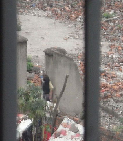 發(fā)帖者說(shuō),“成都某大學(xué)的一對(duì)情侶就這樣饑渴難耐啊,在學(xué)校附近一被拆遷的房子一堵墻下偷歡,沒(méi)有一片瓦為他們遮擋,太可悲了。”