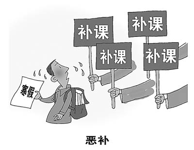 據(jù)《瀟湘晨報(bào)》1月20日?qǐng)?bào)道,一名學(xué)生在網(wǎng)上發(fā)出“反補(bǔ)課倡議書(shū)”,號(hào)召全國(guó)學(xué)校成立“中國(guó)反補(bǔ)課學(xué)生聯(lián)盟”。網(wǎng)帖中,這名學(xué)生講述了自己在寒假補(bǔ)課時(shí)的心情:“補(bǔ)課的重壓下,神經(jīng)搖搖欲墜,做夢(mèng)都?jí)舻紸BCD。”