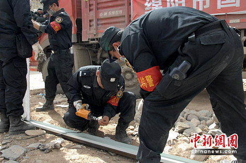 中新網(wǎng)成都4月19日電 (陳鳳丹)19日下午3時(shí),玉樹(shù)縣當(dāng)代西路46號(hào)民族中學(xué)內(nèi),在玉樹(shù)縣執(zhí)行抗震救災(zāi)任務(wù)的成都公安特警支隊(duì)聯(lián)合四川綿陽(yáng)市某建材集團(tuán),開(kāi)始著手搭建16間板房教室,為玉樹(shù)縣民族中學(xué)學(xué)生恢復(fù)上課創(chuàng)造必要條件。