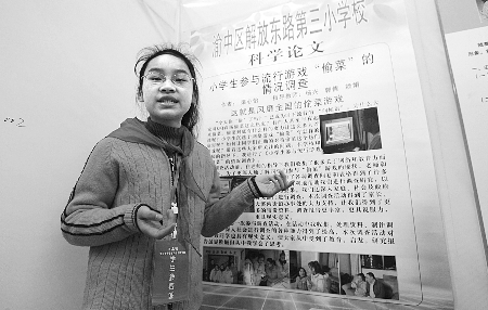 華龍網(wǎng)訊(記者 紀(jì)文伶)“請問你經(jīng)常偷菜嗎?”10歲的梁心怡走遍了學(xué)校、網(wǎng)吧、社區(qū),將這個問題重復(fù)了數(shù)百遍。她可不是閑著沒事干。渝中區(qū)解放東路第三小學(xué)五年級的這個小姑娘花費半年多時間發(fā)出300份問卷調(diào)查,本月寫下近6000字論文——《小學(xué)生參與流行游戲“偷菜”的情況調(diào)查》,在我市25屆青少年科技創(chuàng)新大賽中獲創(chuàng)新大獎。