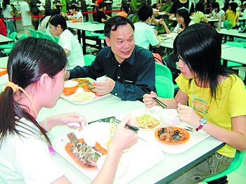 周其鳳常與學生一起在學校食堂進餐,了解各方面情況。 資料照片