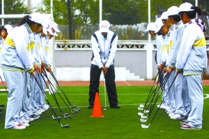 目前,二中高爾夫課只面向女生開課。學(xué)校老師介紹,女生動作柔韌性好、動作協(xié)調(diào),能比較快掌握動作。他們希望積累一定教學(xué)經(jīng)驗后,再向男生開課。