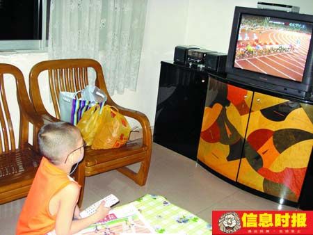 奧運雖好看,可居住在星匯園的張女士這兩天卻有點擔心了。開學(xué)就讀五年級的兒子軒仔是個體育愛好者,這個暑假為了看奧運,連之前一直吵著的云南十日游都放棄了:從奧運開幕至今,軒仔每天唯一的活動項目就是盤在沙發(fā)里抱著遙控器調(diào)來調(diào)去,從一早的《朝聞天下》看到晚上十一點多鐘的《全景奧運》,中途去趟洗手間軒仔都會一路小跑。