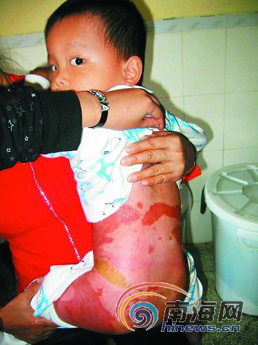 小志的母親黃春秀對(duì)記者說,她和丈夫楊昌奇不久前從定安來到?诖蚬,在義興街租房居住,幾個(gè)月前把小志從定安接到海口,但又沒時(shí)間照顧孩子,就把他送進(jìn)了附近的育才幼兒園,平時(shí)小志在幼兒園食宿。10月14日晚上,她突然接到幼兒園電話說孩子被燙到了。她和丈夫立刻趕到187醫(yī)院,看到孩子被燙掉的皮粘在被子上,非常慘。