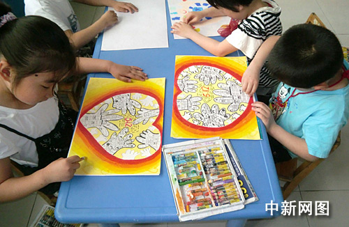 “去年這個時候,孩子們就將自己的零用錢拿出來捐給了災區(qū),今年‘5.12’地震一周年紀念,孩子們又通過繪畫形式表達對災區(qū)的感情,心手相連、相互支持,用自己的行動幫助需要幫助的人!睏罾蠋煴硎,孩子們的作品雖然不能被送到災區(qū)孩子手里,但是將集結(jié)后舉辦一次展覽,讓孩子們最純真的思想感染更多的人。(完)