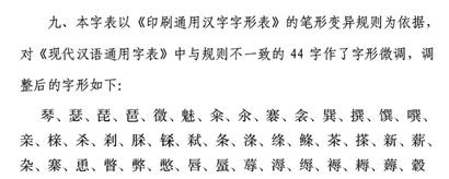 按照這份《通用規(guī)范漢字表》,“琴”“親”“魅”等44個漢字在專家倡導(dǎo)下進行了寫法調(diào)整。