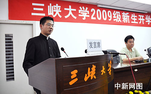 中新網(wǎng)宜昌10月9日電(記者 郭曉瑩)10月9日下午,三峽大學(xué)為包括“最牛作文考生”周海洋在內(nèi)的5名新生舉行了一個(gè)簡(jiǎn)短而隆重的開學(xué)典禮,至此,周海洋正式就讀于三峽大學(xué)。
