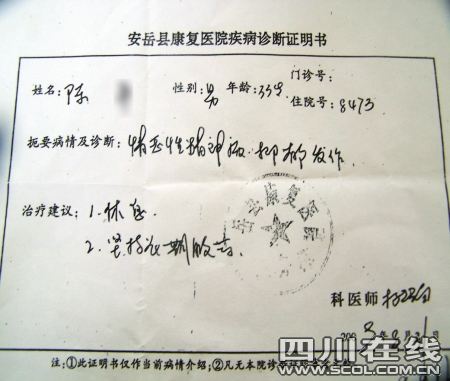 “8名身患‘精神病’離校治病的老師中,絕大部分在省外。其中,有兩個(gè)姓李的老師一個(gè)在西藏,一個(gè)在新疆。除黎某外,其余7人的電話(huà)全部打不通!敝x培忠校長(zhǎng)一臉無(wú)奈地說(shuō):“現(xiàn)在,學(xué)校千方百計(jì)通過(guò)他們的監(jiān)護(hù)人或親朋好友,轉(zhuǎn)交學(xué)校的通知。目前,除周某、陳某、李某某3名老師委托他人轉(zhuǎn)交來(lái)一份‘仍需繼續(xù)治療’的醫(yī)院診斷證明外,其余5人根本聯(lián)系不上。”