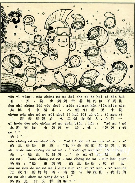 《小蛆蟲找媽媽》的廣泛傳播,除了引發(fā)對教材改革的爭辯,還讓很多網(wǎng)友發(fā)出“人生的感嘆”。網(wǎng)友“大雄”認(rèn)為:“《小蛆蟲找媽媽》不無深度———好人要活,壞人也要活;富人要活,窮人也要活;努力工作的人要生活,好吃懶做的人也要生活。這好比我們喜歡的可愛蝌蚪要生活,而讓人一聽就吃不下飯的蒼蠅也得生活。人們看問題往往帶上感情色彩,以情感判斷和價值取向來判斷事物。但我們有必要讓孩子知道,世界上的事物不是一切都是美好的,只有從多角度對孩子進(jìn)行教化,才讓他們更接近于現(xiàn)實!