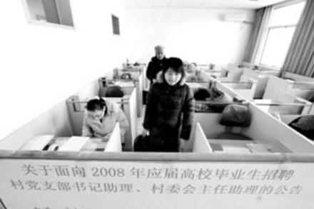 今天是北京市面向2008年應(yīng)屆高校畢業(yè)生招聘村黨支部書記助理、村委會主任助理的第一天。