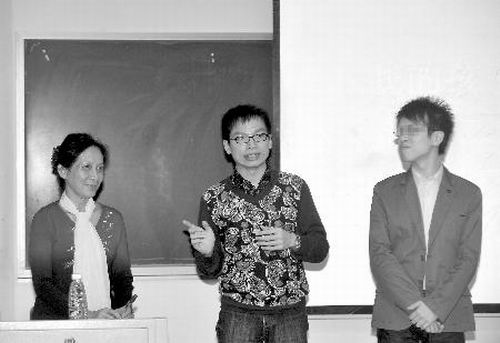 昨晚8時許,四川師范大學(xué)大學(xué)生心理健康教育服務(wù)中心和愛白成都青年同志活動中心邀請吳幼堅、鄭遠(yuǎn)濤及其男友來到校區(qū),為大學(xué)生聯(lián)手上了一堂同性戀話題的課。
