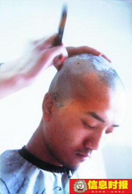 在休學(xué)前,莫同學(xué)剃去頭發(fā),以示暫別校園生活。