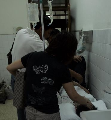 昨日下午2時40分,長海醫(yī)院洗胃室內(nèi),身穿印有復(fù)旦實驗中學(xué)字樣校服的賈偉躺在病床上,已經(jīng)蘇醒,但十分虛弱,無力說話。他的奶奶和父母守護在病床前,默默注視著。
