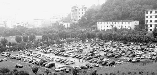 家長開車送孩子報(bào)到 操場停滿轎車如同車展(圖)
