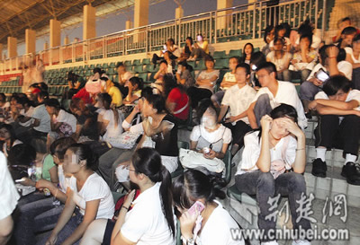 記者當(dāng)即趕到位于江夏區(qū)大花嶺的該校,學(xué)生們的情緒很激動(dòng)!罢猩(jiǎn)章上明明有護(hù)理學(xué)專業(yè),現(xiàn)在為何突然取消?”王同學(xué)說,他們就是沖著該專業(yè)來讀書的,現(xiàn)在要他們轉(zhuǎn)其他專業(yè),他們無(wú)法接受。直到昨晚7時(shí)許,近200名學(xué)生坐在操場(chǎng)的看臺(tái)上不愿離去(如圖)。一名姓嚴(yán)的家長(zhǎng)聞?dòng)嵹s來,他氣憤地說:“校方太不負(fù)責(zé)任了,事先沒有任何溝通,孩子們?cè)跄懿浑y受!”