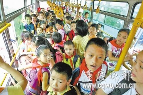 為解決進城務(wù)工人員孩子的行路難,渝北區(qū)仁睦小學(xué)從“對口幫扶學(xué)校”第三實驗小學(xué)租來一輛校車,放學(xué)時負責送師生們回家。然而,他們卻忽視了安全——準載50人的校車竟然實載了120人!