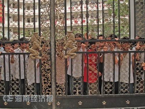 10月30日早晨,?趪d大道附近的海南華南高級職業(yè)技術(shù)學(xué)校一百多名學(xué)生嫌學(xué)校食堂伙食不好、水電使用不方便,沖出校園到外面用餐,致千余學(xué)生停課。事發(fā)后,省、市、區(qū)教育部門及當(dāng)?shù)鼐郊皶r趕到現(xiàn)場協(xié)調(diào)處理,迅速平息了此事。