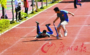 本報訊 (記者劉文亮 通訊員廖金釗)一條紅繩拉近了普通人和殘疾學生的距離。昨日,廣州市盲人學校在市75中學高中部體育場舉行第十四屆運動會,共有 200多名盲校學生同場競技。據(jù)了解,為了保障學生的正常比賽,共有80多名教職工和150余名來自廣州體院等學校的志愿者在賽場上進行“一對一”保護工作。