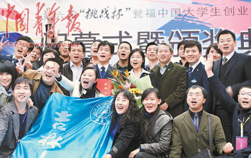 北京師范大學(xué)的“金豆豆少兒財(cái)商培訓(xùn)公司”團(tuán)隊(duì)也拿到了金獎(jiǎng),兩名女隊(duì)員相擁而泣。宋佳怡告訴記者,團(tuán)隊(duì)為這個(gè)作品花了一年多時(shí)間,很辛苦。這次獲獎(jiǎng),感到了被肯定的喜悅,另一大收獲是評(píng)委對(duì)作品提出了許多中肯的意見(jiàn),回到北京后團(tuán)隊(duì)將繼續(xù)完善作品。