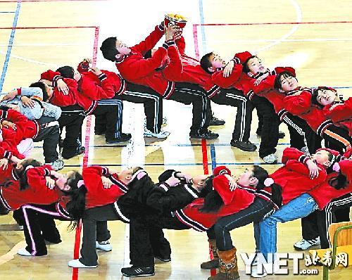 不用任何支撐,20名學(xué)生依次躺在同伴腿上疊成一個圈,雙手傳遞裝著乒乓球的小桶,6分鐘內(nèi)比賽哪個隊傳遞得最快。這是“歡樂不倒翁”項(xiàng)目比賽時的場景,不僅比拼個人的平衡能力,還要求孩子和前后兩個伙伴都默契配合。