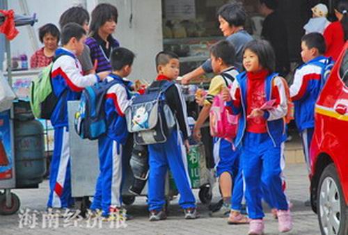 昨日下午,記者在海口彩虹天橋處看見,路邊的許多小攤販生意非常好,圍著許多小學(xué)生,買各種小零嘴。偶爾傳來一句稚嫩的童音:“你不請(qǐng)我呀?我前兩天都請(qǐng)你了。你先請(qǐng)我,明天我請(qǐng)你!”