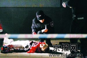 在事發(fā)現(xiàn)場(chǎng),小穎倒在了一輛黑色雪鐵龍轎車(chē)的旁邊,散開(kāi)的黑色外套里,依稀能看見(jiàn)左前胸的一片殷紅,黑色手包和已經(jīng)辨不出顏色的圍巾就在她的身旁。而一把十幾厘米長(zhǎng)的水果刀還放在小峰倒下的位置。小穎的尸體旁邊,警方正在進(jìn)行現(xiàn)場(chǎng)勘查。