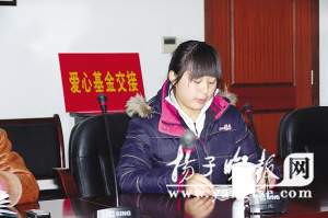 昨天,母校南京66中將小朱高中生活費剩余的1.8萬元轉(zhuǎn)交到揚州職大領(lǐng)導(dǎo)手中的時候,堅強的小朱再也抑制不住淚水。在場的老師們都很驚訝,這位堅強的女孩竟把“身世”隱瞞了這么長時間!“高中母校已經(jīng)為我付出太多太多了,我不想再讓現(xiàn)在就讀的大學(xué)也為我操心,我不想連累太多人……”朱曉娟哽咽著說。