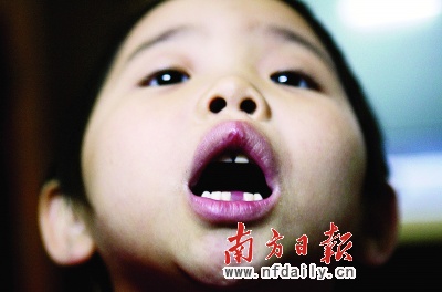 當(dāng)日傍晚6時許,白英琴將珊珊從幼兒園領(lǐng)回家,“她沒有太多話,回到家我做了她喜歡吃的肉,可她怎么也不張口吃飯。”當(dāng)白英琴讓珊珊張口,試圖喂她吃飯時,發(fā)現(xiàn)珊珊下排門牙不見了(如圖,楊曦攝)。