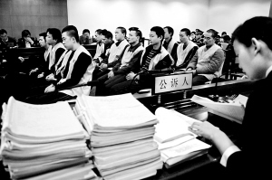 昨天8時(shí)50分,押送著黃偉、操雙全等13名犯罪分子的3輛警車陸續(xù)抵達(dá)海淀法院。 整個(gè)庭審持續(xù)了近2個(gè)小時(shí),擺在公訴人面前的,是兩大摞犯罪嫌疑人的證據(jù)材料。記者數(shù)了數(shù),本案的起訴書就有25頁之多。在大量證據(jù)面前,所有犯罪嫌疑人均選擇認(rèn)罪。