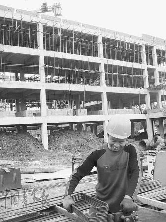 4月27日,記者來(lái)到四川省德陽(yáng)市中江縣輯慶中學(xué)。在新校舍的施工現(xiàn)場(chǎng),輯慶中學(xué)辦公室主任劉三貴告訴記者,震后,輯慶中學(xué)的校舍全部成為危房,經(jīng)專(zhuān)家論證,決定進(jìn)行原址重建,重建的輯慶中學(xué)總占地41.44畝,其中新征地32.4畝,拆遷21戶(hù)。