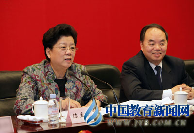 國(guó)務(wù)委員陳至立12月22日在出席教育部直屬高校工作咨詢委員會(huì)第18次全體會(huì)議時(shí)強(qiáng)調(diào),要認(rèn)真學(xué)習(xí)貫徹黨的十七大精神,以提高質(zhì)量為核心,加快從高等教育大國(guó)向高等教育強(qiáng)國(guó)邁進(jìn)。