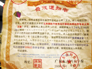 一直以來,成績不錯的徐洋都是父母的驕傲,剛剛放暑假,想到下學(xué)期就要初三了,徐洋決定在家里看看書。前兩天,小區(qū)的門衛(wèi)突然打電話來說他有份錄取通知書剛剛寄到,讓他去取。等拿到錄取通知書后,徐洋懵了,通知書是由廣東東南科技學(xué)校寄出的,上面赫然寫著,“現(xiàn)正式錄取你為本校三年制電子技術(shù)與計算機(jī)科學(xué)應(yīng)用專業(yè)大專(正取)新生”。