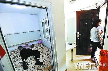 “豪華版”膠囊公寓位于安定門后肖家胡同,是由平房改造的。這個(gè)有72平方米使用面積的房屋本是黃家私房,他花了18萬(wàn)重建,自己設(shè)計(jì)裝修,建成了可自由組合的四套“豪華”膠囊公寓。走進(jìn)公寓,左手邊是廚房和洗澡間,熱水器、洗衣機(jī)、微波爐等生活用品一應(yīng)俱全。再往里走,左右分別有兩個(gè)防盜門,將房間分成兩個(gè)單元,每個(gè)單元里有一間容納了雙人床的“膠囊”和一個(gè)可單獨(dú)出租的閣樓,“膠囊”外是公共空間,整套房間可以拆成4戶分別出租。