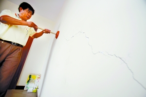昨日,開(kāi)發(fā)商北京天鴻集團(tuán)公司回龍觀開(kāi)發(fā)部負(fù)責(zé)人劉先生表示,小區(qū)確實(shí)存在多戶墻體裂開(kāi)的情況。