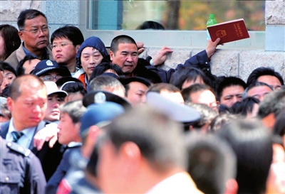 中午時,排隊(duì)的人數(shù)達(dá)到了數(shù)千人?吹角懊孢有幾百人,楊老先生很失望,“這隊(duì)得排到明天去,3個小時才往前挪了10米”。他說,他和家人是看了有關(guān)加強(qiáng)經(jīng)適房管理的通知的新聞后才來的,“轉(zhuǎn)成商品房后就沒有那么多限制了,想租想賣都成。而且怕政策收緊,萬一以后改要繳納更多的稅費(fèi)呢”。