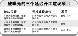 廣州市國土房管局首次在其網(wǎng)站上曝光了三個延遲開工建設的項目,并發(fā)公函催促其在限期前動工開發(fā)建設。對逾期仍未動工者,市國土房管局將依法進行處置。
