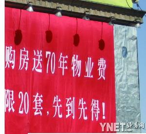 “終身免物業(yè)費”、“購房送70年物業(yè)費”,在今春一派樓市回暖的景象中,北京許多樓盤相繼推出新的促銷熱賣舉措。近日,京城多家房產(chǎn)網(wǎng)站上,都出現(xiàn)了部分樓盤購房全免物業(yè)費的消息,一時成為購房者和業(yè)內(nèi)人士關(guān)注的話題。
