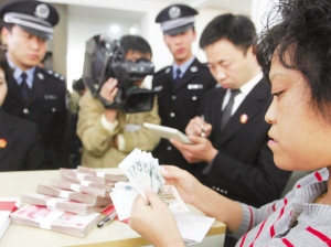 兩名法警立即沖上去,與女子爭(zhēng)奪在一起。最終,女子被帶走,信封被搶了回來(lái),法官?gòu)男欧饫锏钩鰯?shù)十個(gè)建行存折和數(shù)十張銀行卡,并找到一張記錄該公司12個(gè)銀行賬戶(hù)的單子,“戰(zhàn)果不錯(cuò)!”執(zhí)行法官笑了。