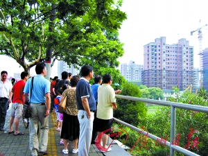 一位在購房者臨時(shí)接待點(diǎn)坐了兩天、不愿透露姓名的業(yè)主告訴記者,該樓盤是在2008年11月開盤的,第一期的起價(jià)是每平方米1.2萬元,到今年4月下旬,第二期開盤的時(shí)候,起價(jià)已經(jīng)躥升至每平方米1.3萬元,今年5月下旬,第三期開盤,每平方米的起價(jià)又漲了500元。